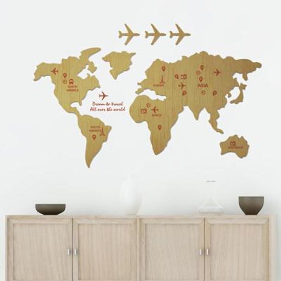 [우드스티커] 세계지도 (컬러완제품) - 입체우드 월데코 포인트 나무스카시 벽장식
