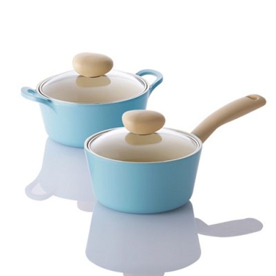 네오플램 레트로 유리뚜껑 냄비 2종세트 (18편수+18양수) - 민트색