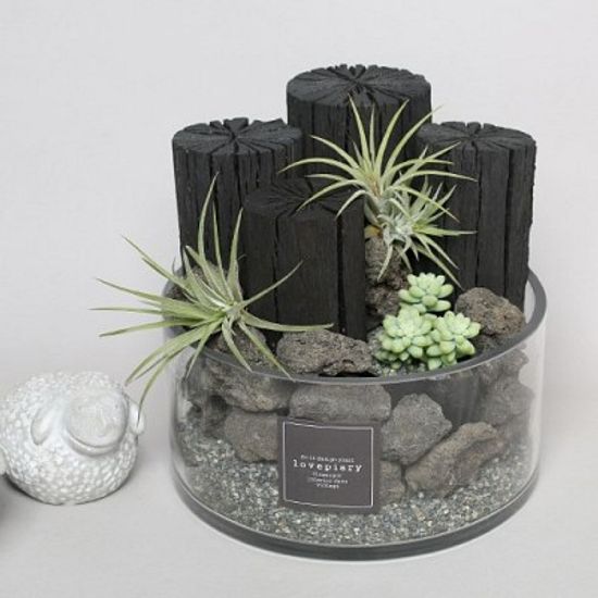 천연 가습기 글라스에 담긴 틸란과 숯(中)