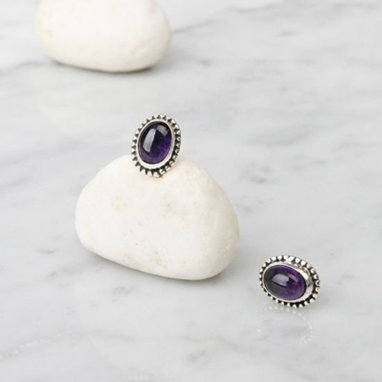 [925실버]앤틱 라운드 자수정 실버귀걸이 ER214_J