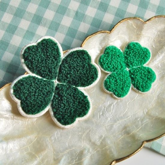 뽀글이 네잎클로버 자수 패치 와펜