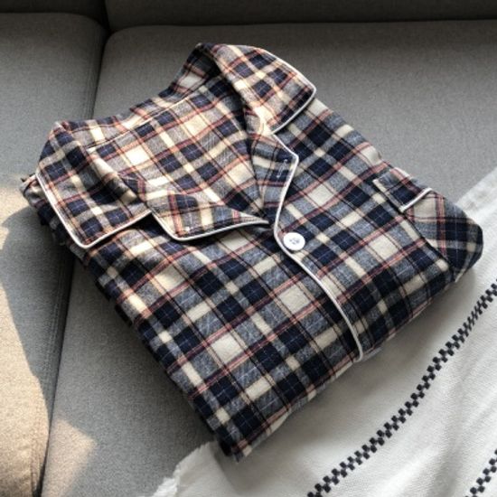 맨해튼 체크 피치기모면 커플잠옷 홈웨어