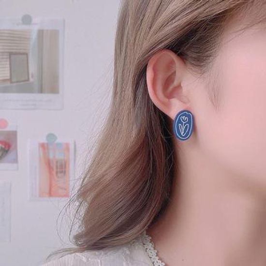 보트니 조형물 꽃그림 원형 귀걸이 925