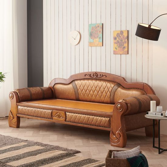 [선물추천]보루네오 원목가죽 온돌 흙 소파침대 YS121
