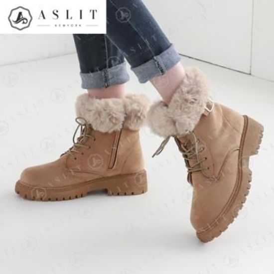 [애슬릿]여성 데일리 레이스 업 버클 털 워커 부츠