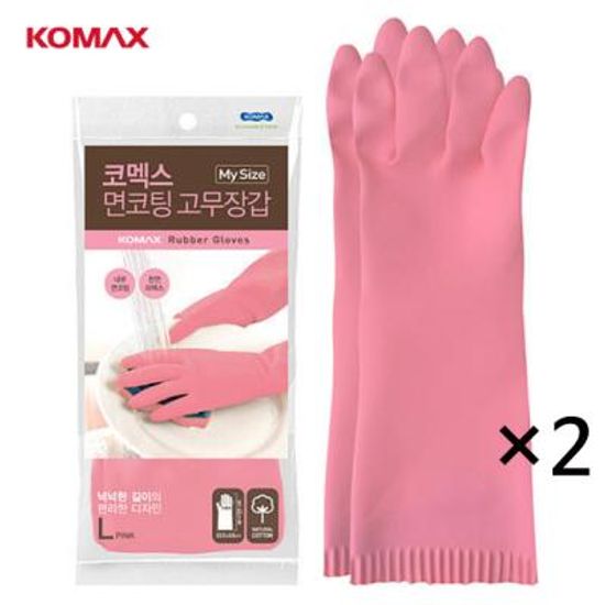 고무장갑 면코팅 핑크 롱 (대) 2개세트 설거지장갑