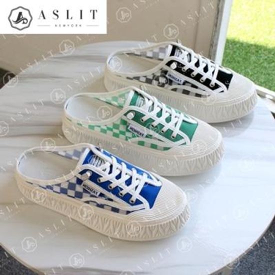 [애슬릿]여성 아웃솔 체크무늬 망사 뮬스니커즈블로퍼