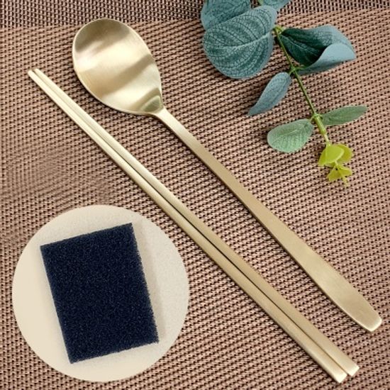 놋반 안성방짜유기 1인수저세트+유기수세미 1개