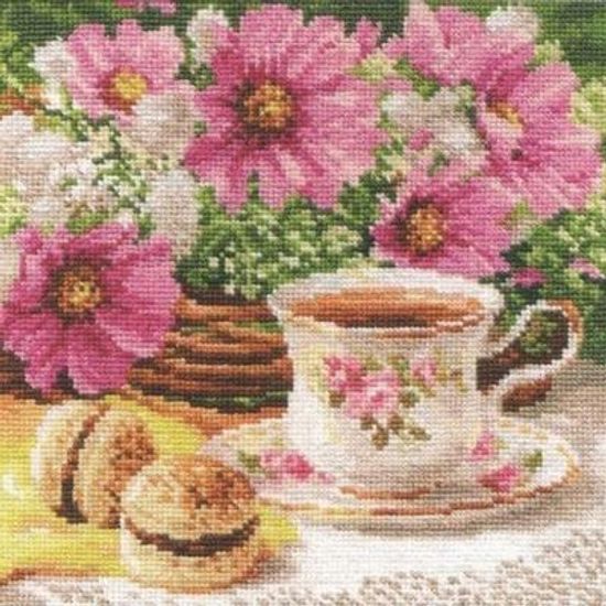 차 한 잔의 여유 (사각) 캔버스 보석십자수 30x30