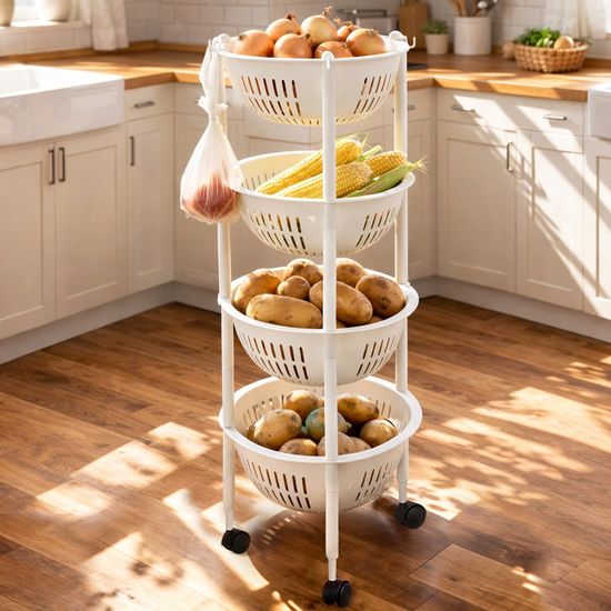 코지 바스켓 주방 4단 선반 트롤리 적층 바구니
