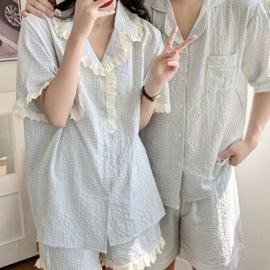[지지미원단] 리피 깅엄체크 커플 상하세트 잠옷 1559