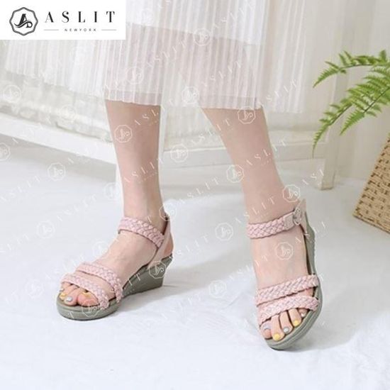 [애슬릿]국내 생산 꽈베기 스트랩 웨지 힐 샌들