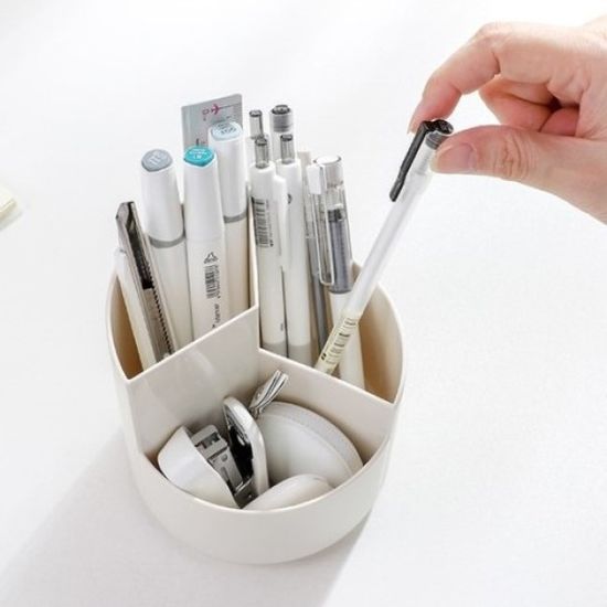 화이트 360도회전 연필꽂이 책상수납함 펜꽂이