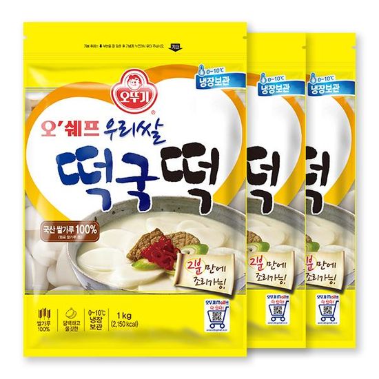 [오뚜기] 오쉐프 우리쌀 떡국떡 (1kg) x 3봉