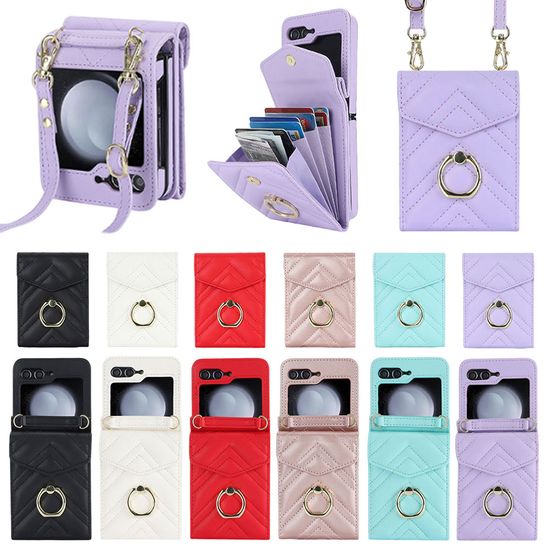 갤럭시 Z플립 5 4 3 카드 지갑 링 스트랩 가죽 케이스