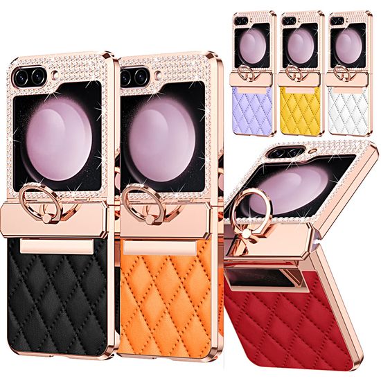 갤럭시 z 플립 5 4 3 큐빅 메탈 힌지 가죽 링 케이스