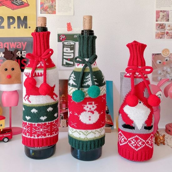 크리스마스 패턴 니트옷 와인 샴페인 커버(3종)