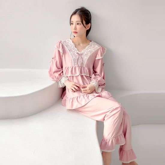 [쿠비카]소매 큐티 리본 브이넥 투피스 여성잠옷 W254