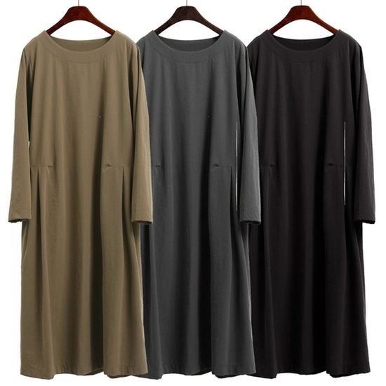 [애슬릿]롱 라운드넥 주름 에이라인 긴팔 원피스