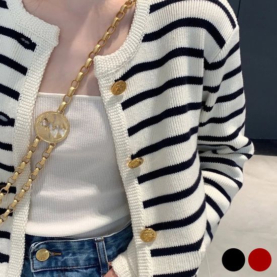 고급스런 단주 스트라이프 가디건 간절기 여성 카디건