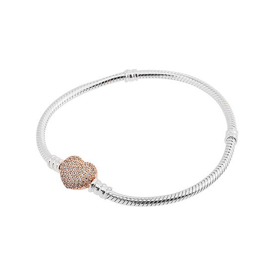 판도라 모먼트 파베 하트 위드 로즈 팔찌 586292CZ