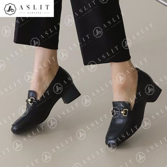 [애슬릿]천연 소 가죽 청키 힐 사각 코 로퍼 펌프스