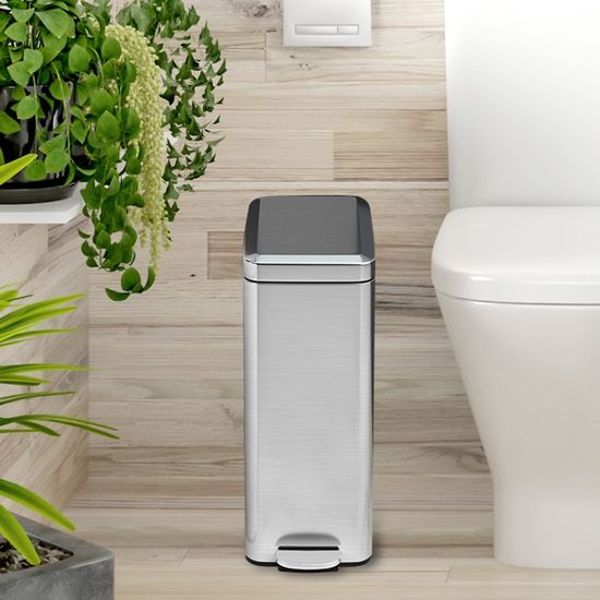 원룸 화장실 틈새 종량제 무소음 페달 스텐 휴지통10L
