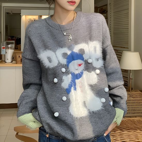 여성 솜털 눈사람 스노우맨 gooo 그레이 니트