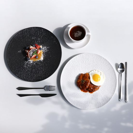 타루 원형 도자기 플레이팅 흑백 굽접시 4종 택1