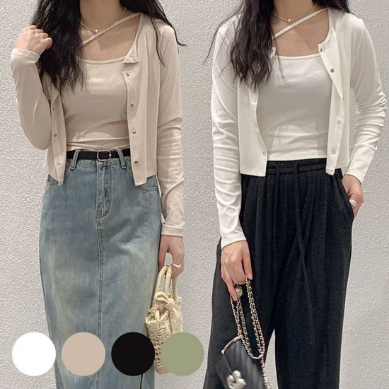 여성 데일리 크롭 나시 가디건 투피스 세트