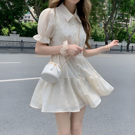 여성 꾸안꾸 데일리 미호 퍼프소매 미니 원피스