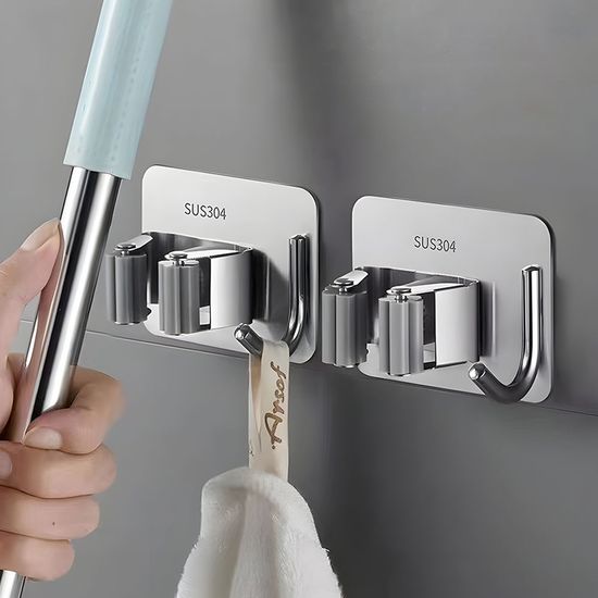 무타공 빗자루 홀더 밀대 거치대 수납 꽂이 실버 N114