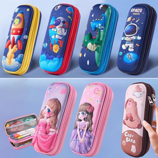 3D 동물 카피바라 공룡 캐릭터 더블 지퍼 3단 천 필통