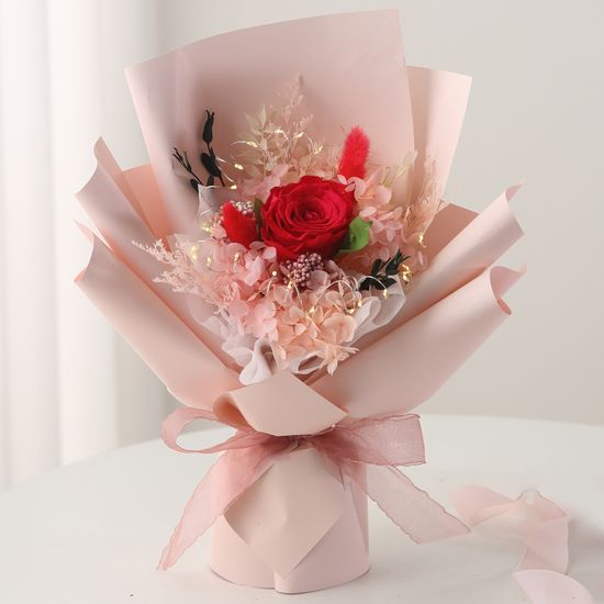 [졸업선물] LED 프리저브드 장미 꽃다발 + 핸들박스
