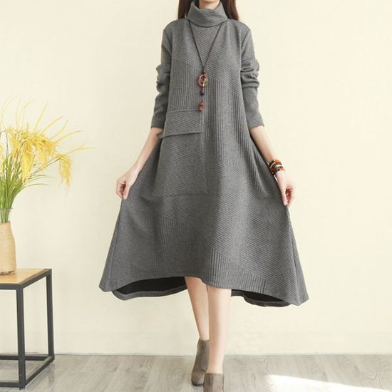 사선 포켓 에이라인 목폴라 원피스 치마