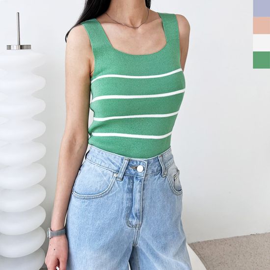 골피아 여자 스퀘어넥 스트라이프 민소매 나시 니트