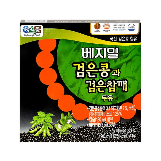 베지밀 검은콩과 검은 참깨 두유팩 190ml 16입