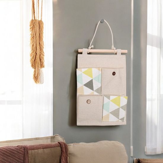 린넨 벽걸이 포켓 수납함 4칸 걸이형 주머니 영수증