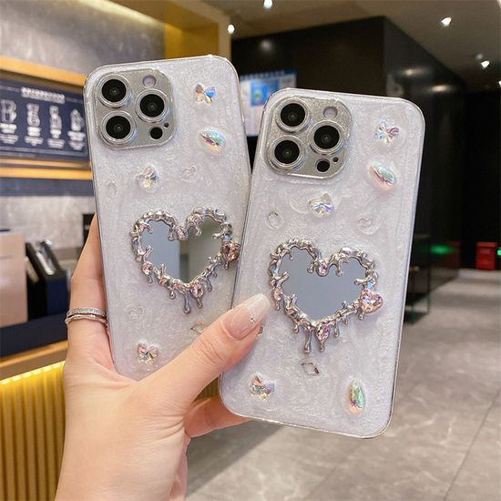 아이폰 16 15 14 13 12 보석 파츠 하트 미러 케이스