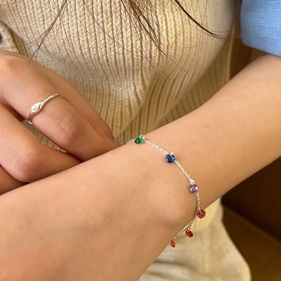 여성 실버 925 원형 컬러 큐빅 심플 팔찌
