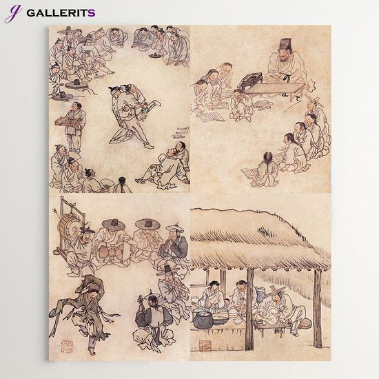 김홍도 그림 민화 씨름 서당 풍수 거실 인테리어 액자 한국화 수묵화