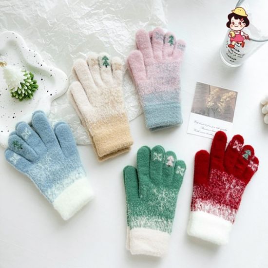여성용 크리스마스 트리 손가락 장갑 성탄절 니트 손