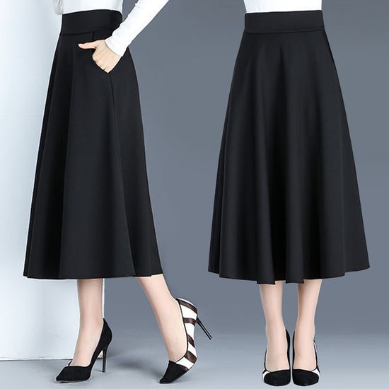 여성 A라인 포켓 허리밴딩 블랙 스커트 여성 데일리