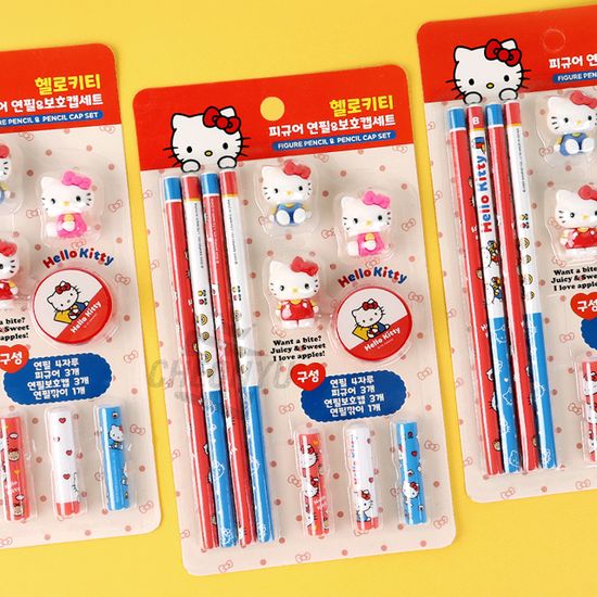 [산리오] 헬로키티 피규어 연필 보호캡 연필깎이 세트