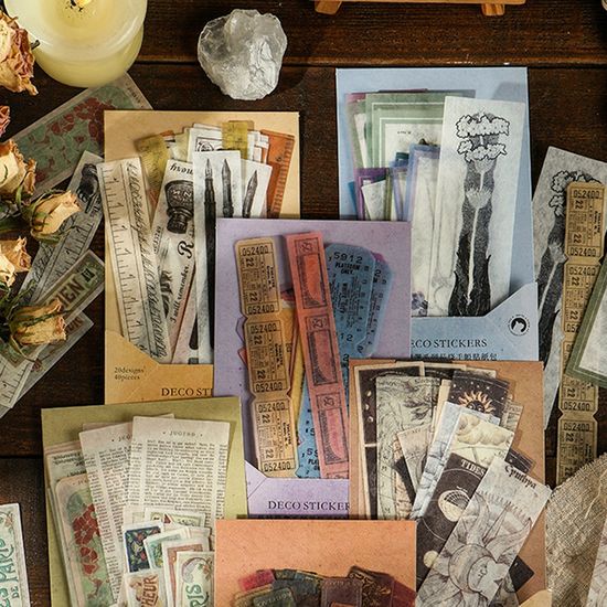 세로 빈티지 다꾸 스티커 팩 6종 감성 고전 레트로 꽃