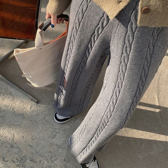 에띠엔 하이웨스트 밴딩 니트 와이드 팬츠