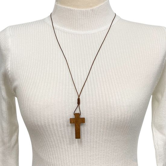 나무 십자가 펜던트 목걸이
