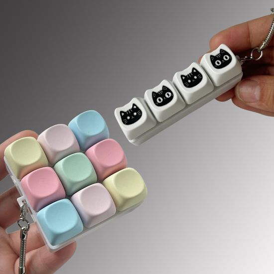 고양이 파스텔 큐브 피젯 키보드 버튼 블럭 키캡 키링