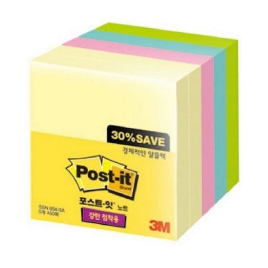 3M 포스트 잇 SSN 654-5A 알뜰팩 5개 450매