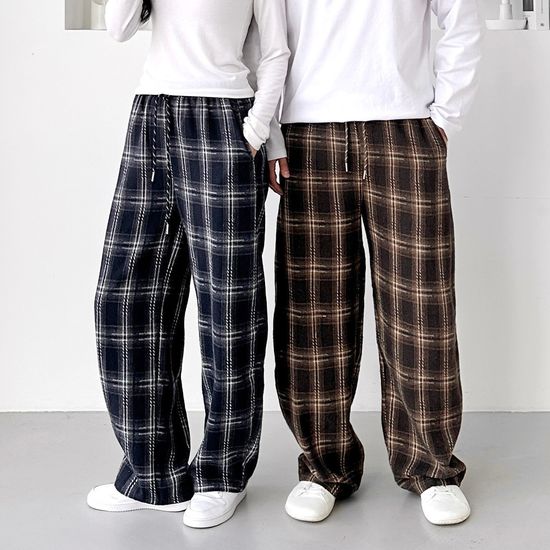 얼터네이트 남녀공용 체크 커브드 팬츠